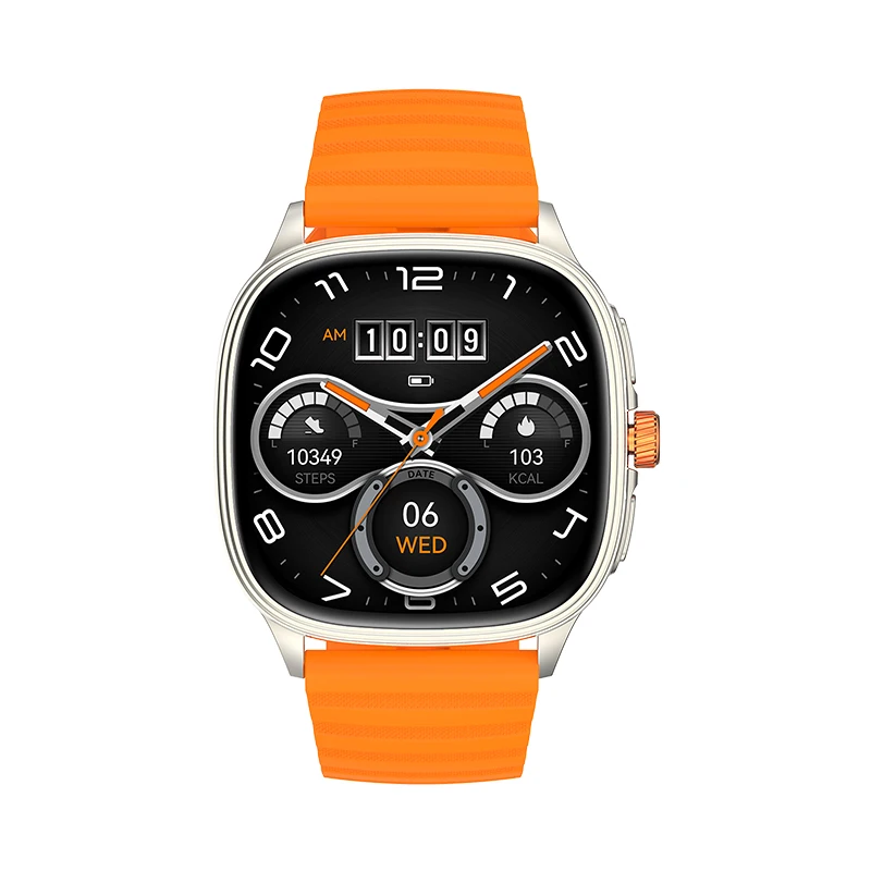 Hot Design 2026 Smart Watch HK73, Black Orange Ultra Thin Body 1.73inch AMOLED Screen Custom Faces BT Calling Unisex Smartwatch